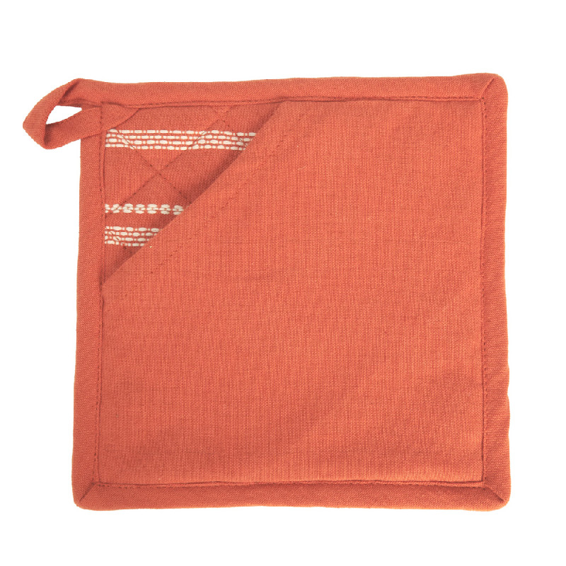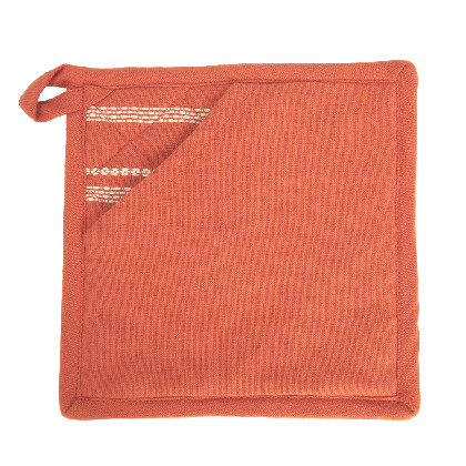No et cremis i alhora alegra la teva cuina. Agafador resistent i de disseny. Combina-ho amb els nostres complements de cuina. Agafador de cotó 100%. Amb bagueta per penjar. Fabricat a la Índia.