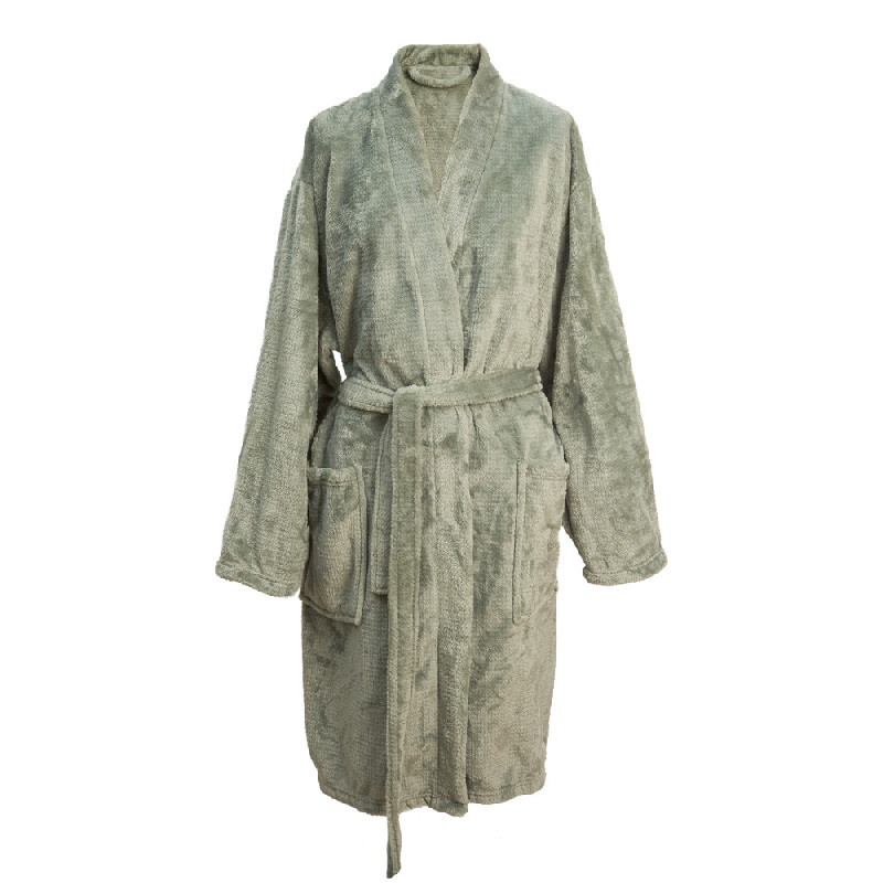 Bata unisex de microfibra, 100% polièster amb tacte suau de vellut, proporciona calidesa en èpoques de fred. Còmoda bata d´amplis butxaques i cinturó.