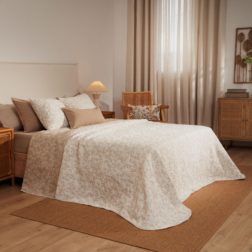 Cobrellit teixit de cotó, disseny actual i modern en color Beix. Densitat: 320 gsm. Ideal com a cobrellit d´entretemps per utilitzar tant en el teu llit com en el teu sofà. Els seus colors et donen l´opció de combinar-ho amb la nostra col·lecció de coixins. Els coixins a joc es venen per separat, no venen inclosos. Fabricat a Espanya.