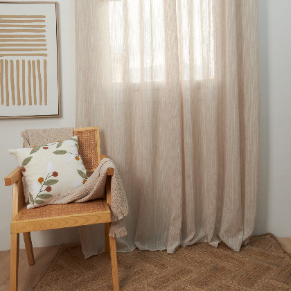 Cortina confeccionada d' alta qualitat, teixit de polièster i lli. Gràcies als 8 traus de la vora superior, et permet penjar les cortines directament a la barra d'una manera ràpida i senzilla. Fabricat a Espanya. Decorar la teva casa mai havia estat tan fàcil, barat i pràctic. No inclou barra. El tamany o el teixit de les cortines no s'ajusta al que estàs buscant? Pregunta'ns pel nostre departament de confecció a mida. Disposem d'una gran varietat d'estils, dissenys, colors i mecanismes per adaptar.se a qualsevol decoració.