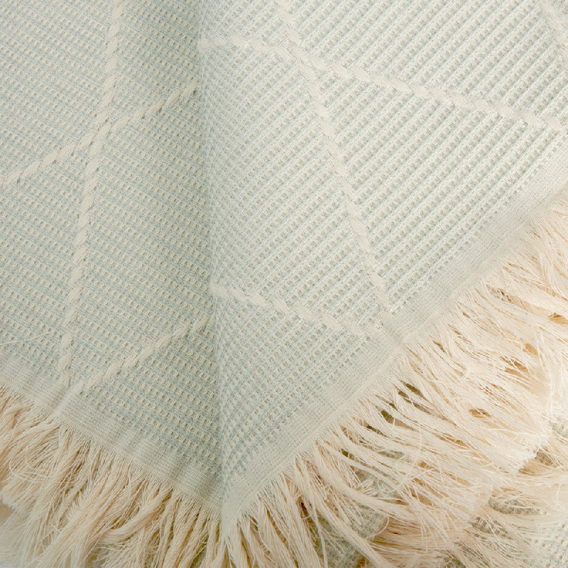 Cobrellit teixit de cotó, disseny actual i modern en color Aqua. Ideal com a cobrellit d´entretemps per utilitzar tant en el teu llit com cobertor pel teu sofà. Els seus colors et donen l´opció de combinar-ho amb la nostra col·lecció de coixins. Els coixins a joc es venen per separat, no venen inclosos. Fabricat a Espanya.