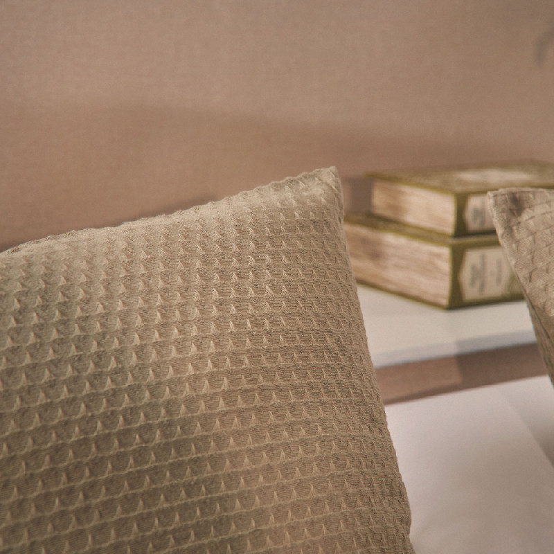 Funda de coixí de teixit piqué de 50% cotó -50% polièster amb un disseny elegant i actual. Amb tancament de cremallera. Combina i crea un decoració única a casa teva. No inclou el farcit. Fabricat a Espanya.