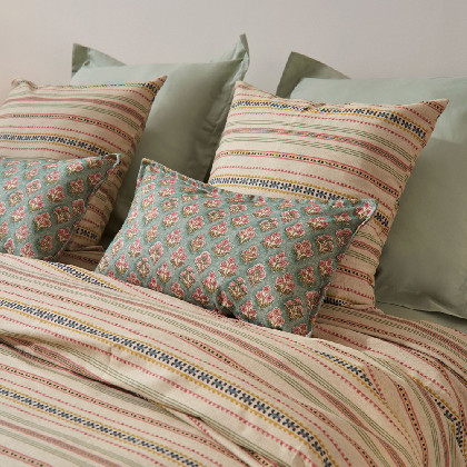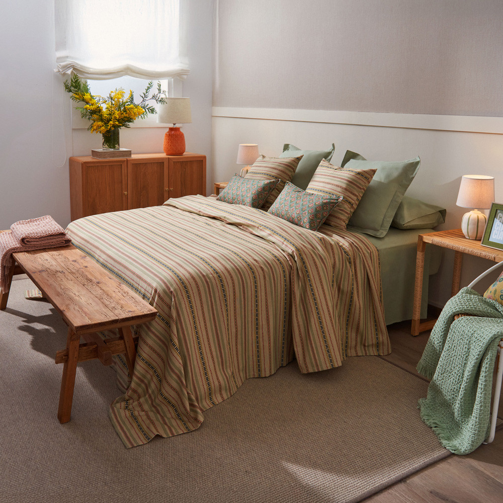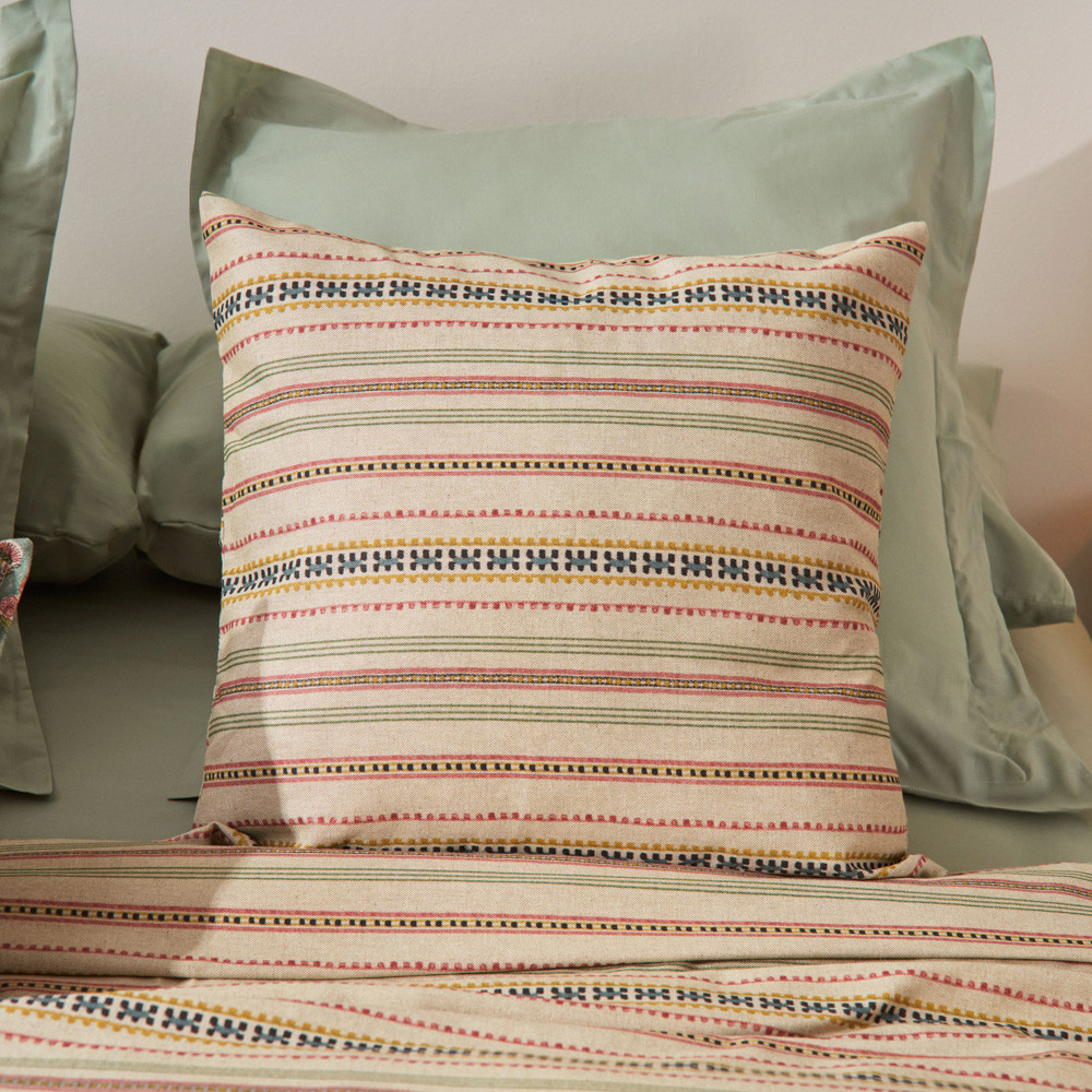 Funda de coixí de disseny 100% cotó de 144 fils estampat amb una pestanya decorativa de 2 cm al voltant. Amb tancament de solapa. El teixit de cotó és transpirable, hipoalergènic i de tacte suau. Proporciona frescor en les nits d'estiu i calidesa a les nits fredes. Aquest producte té el certificat Oeko-Tex 100, que demostra que s'ha eliminat qualsevol substància nociva en el procés de producció, és segur per a la salut humana. Els moderns i acollidors estampats dels teixits proporcionaran un nou aspecte al seu dormitori. Combinable amb les nostres col·leccions de llençols i fundes nòrdiques. Fabricat a Portugal.