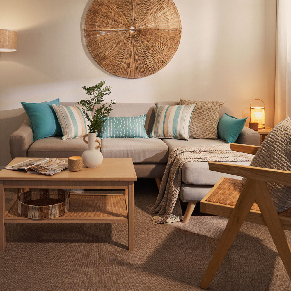 Funda de coixí e cotó amb un disseny singular. Teixit amb textura rústica que li aporta un toc càlid i acollidor. Tancament de cremallera. Teixit durador que proporciona confort i estil personalitzat a la teva llar. Pots utilitzar-lo per a decorar el llit o per donar un toc de color al teu sofà. Els seus colors et donen l´opció de combinar-ho amb la nostra col·lecció de cobrellits, llençols i mantes de sofà.