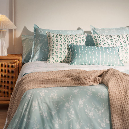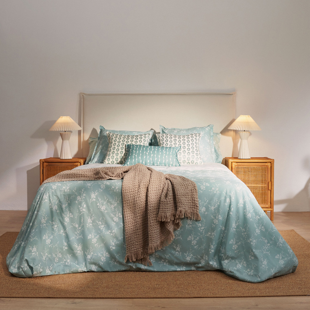 Set de Funda nòrdica de 3 peces fabricat en cotó 100% de 144 fils. Inclou: 1 funda nòrdica, 1 funda de coixí de dormir i 1 llençol de sota ajustable per una alçada de matalàs max. de 31cm. Obertura en la part inferior per a una fàcil col·locació del farcit nòrdic i llarg de 270cm per a poder remetre sota el matalàs i evitar el seu desplaçament. És reversible, aquest model de funda nòrdica té 2 cares diferents, el que permet es pugui utilitzar pels dos costats. El teixit de cotó és transpirable, hipo-al·lergènic i de tacte suau. Proporciona frescor en les nits d'estiu i calidesa a les nits fredes. Aquest producte té el certificat Oeko-Tex 100, que demostra que s'ha eliminat qualsevol substància nociva en el procés de producció, és segur per a la salut humana. Els moderns i acollidors estampats dels teixits proporcionaran un nou aspecte al seu dormitori. Fabricat a Portugal.