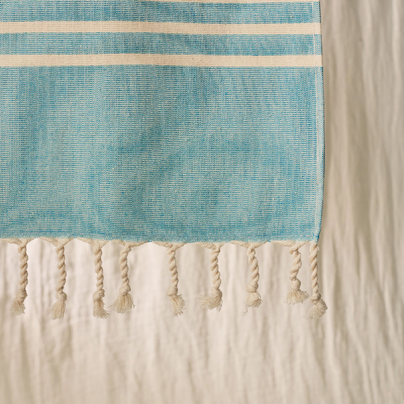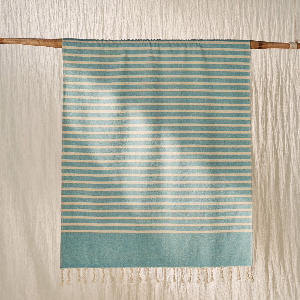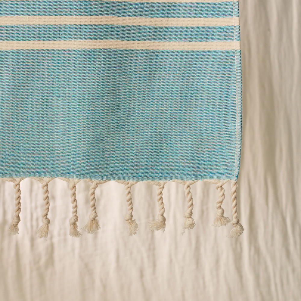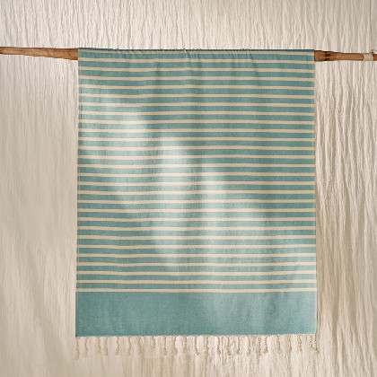 Una tovallola de platja Fouta, 100% cotó, amb una cara de ris per assegurar una excel·lent capacitat d'absorció i màxima suavitat. Molt lleugera i pràctica, ocupa poc lloc per les seves mide. Ideal per assecar-se i descansar al costat de l'aigua.