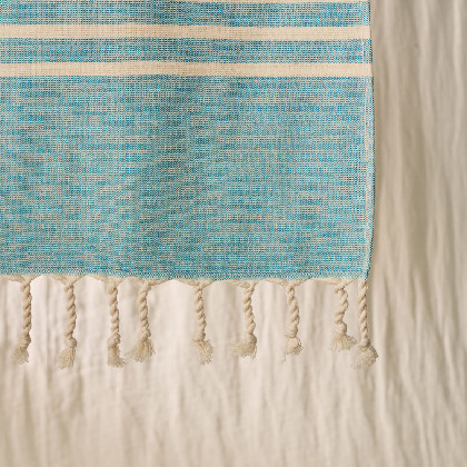 Una tovallola de platja Fouta, 100% cotó, amb una cara de ris per assegurar una excel·lent capacitat d'absorció i màxima suavitat. Molt lleugera i pràctica, ocupa poc lloc per les seves mides. Ideal per assecar-se i descansar al costat de l'aigua. Fabricat a Turquia.