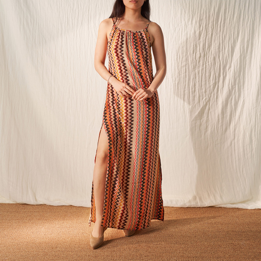 Vestit curt. El seu teixit és suau, molt agradable al tacte. Aquesta fibra es molt fresca i transpirable. Una peça de vestir molt còmoda i amb múltiples utilitats: per portar a la platja, per casa o on et vingui de gust. És el complement idear per a t'acompanyi aquest estiu.
