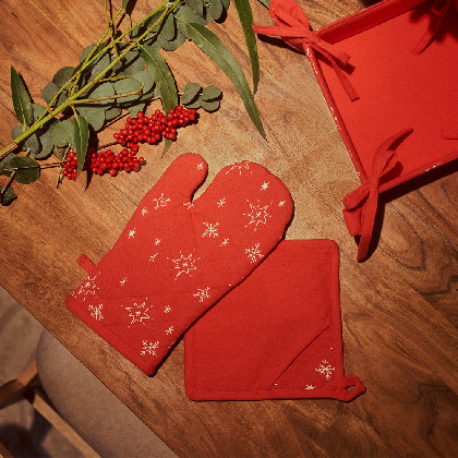 Do not burn simultaneously and brighten up your kitchen. Resistant design and mitten. Combine it with our kitchen accessories. 100% cotton mitten. With hang loop. Made in India.