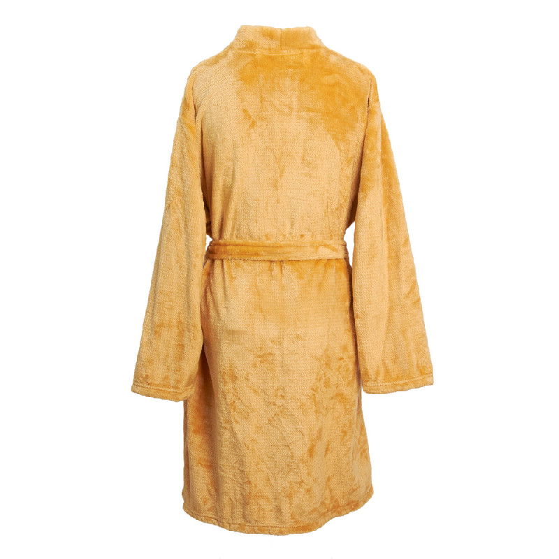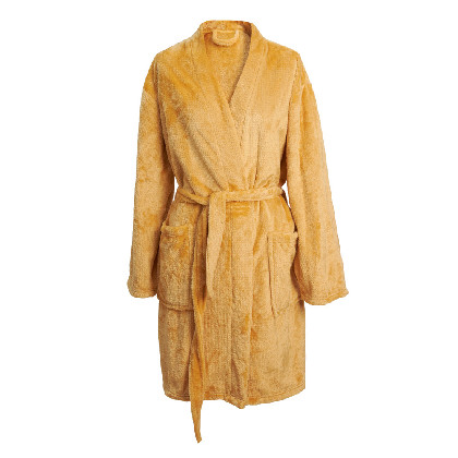 Unisex coat microfiber, 100% Polyester with velvety soft touch. Offers some warmth in cold weather. Comfortable robe of deep pockets and belt.