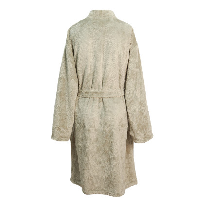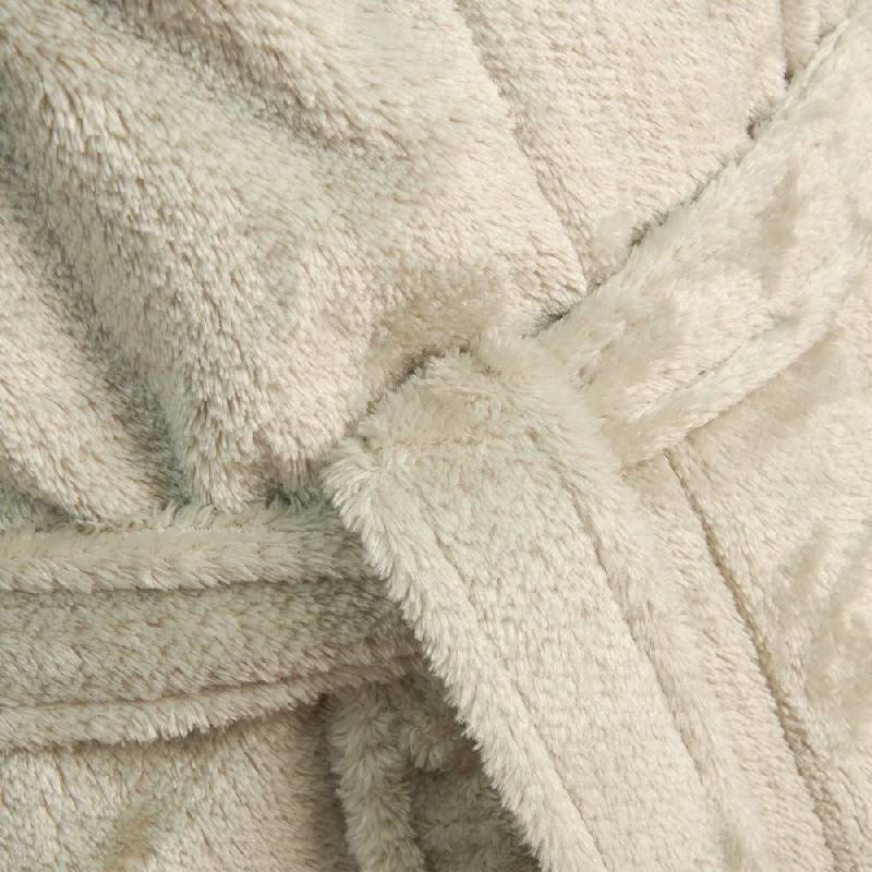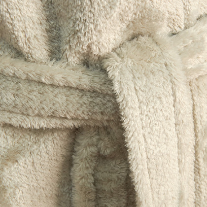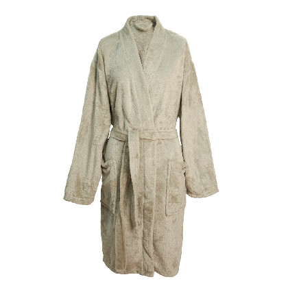 Unisex coat microfiber, 100% Polyester with velvety soft touch. Offers some warmth in cold weather. Comfortable robe of deep pockets and belt.