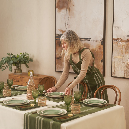 100% Cotton Apron printed with Christmas design. Large front pocket. Adjustable neck tie with buttons. Apron to brighten up your culinary creations. The funny design can arise the atmosphere of the celebration such as the Christmas. It can be the home decoration or as a gift for family and best friends. Combine it with our christmas collections of kitchenlinen.