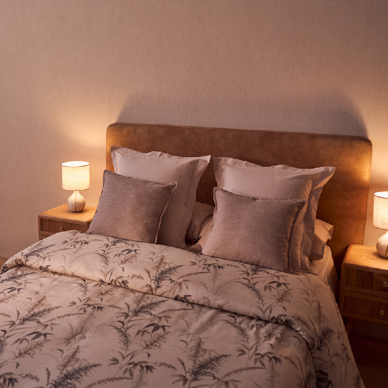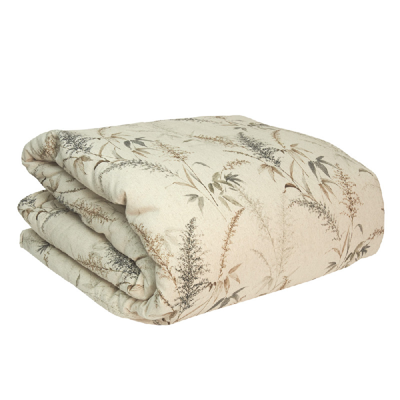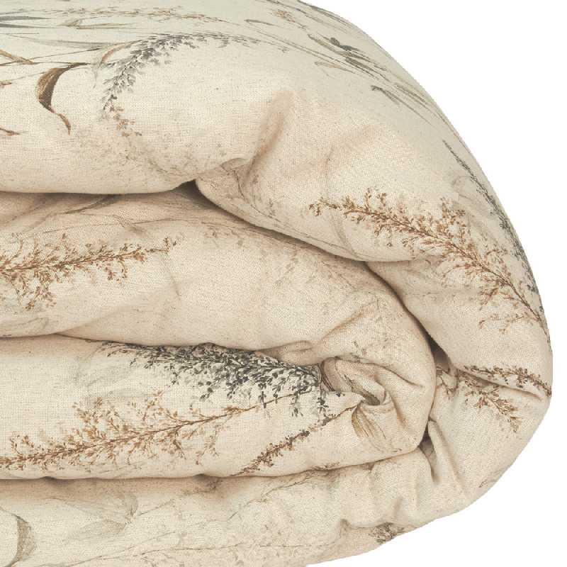 Spectacular high quality duvet with digital print design and linen touch. Outer front fabric in cotton, linen and polyester blend; outer back fabric made of 100% cotton. 100 gsm polyester filling, feather touch, to give warmth to your dreams. Easy to wash. Decorating your bed has never been so simple and practical. Matching cushion covers sold separately. Made in Spain.