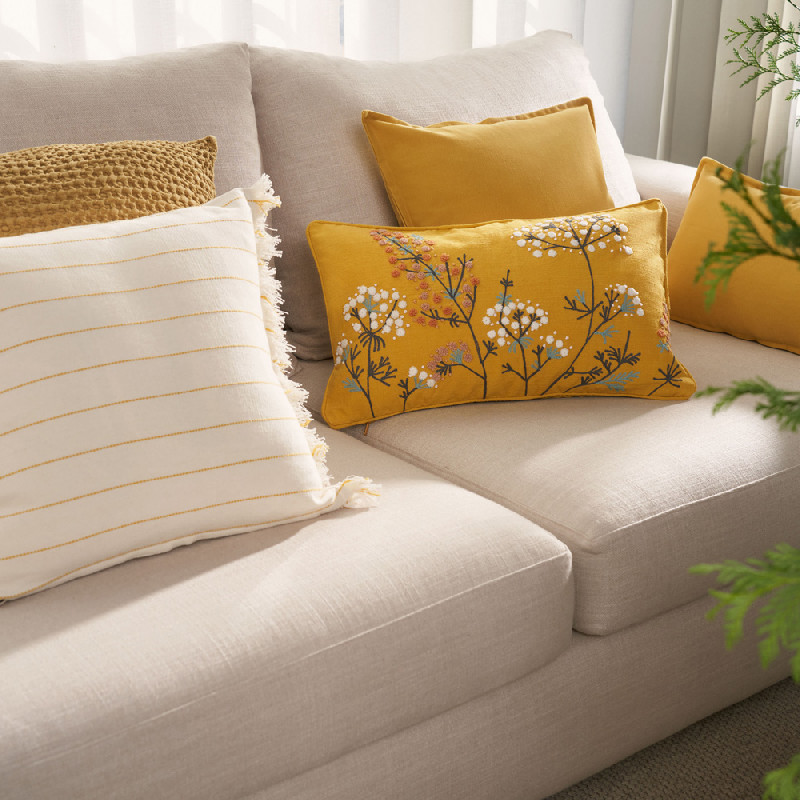 Cushion cover with original embroidered design, creating a beautiful relief of flowers. Zipper closure. Filling not included, to be purchased separately. Combine it with our home collection. Made in India.