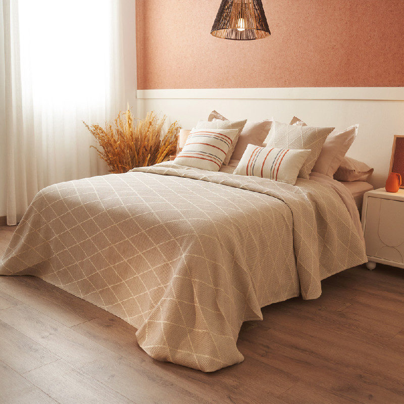 Decorative cushion cover, jacquard woven with a modern design. Zipper closure. Decorative tab on 3 sides. Soft and durable fabric that provides comfort and personalized style to your ambient. Ideal to use both your bed how your couch. Their colors give you the option to combine it with our collection of bedspreads, sheets sets and plaids. Made in Spain. Infilling not included.