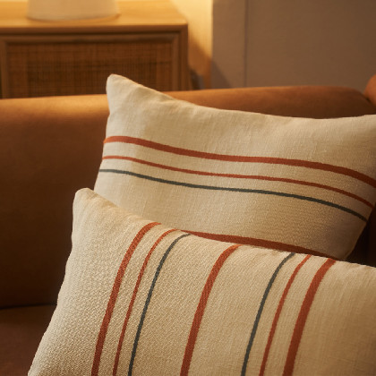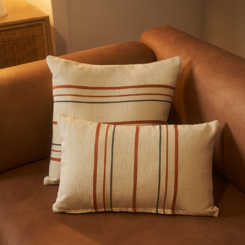Cushion cover with zip in jacquard technique. Cotton 100%. Thin cord in plain contrasting colour around the perimeter. Its colours give you the option of combining it with our collection of quilts and foulards. Product made in Spain. Infilling not included.