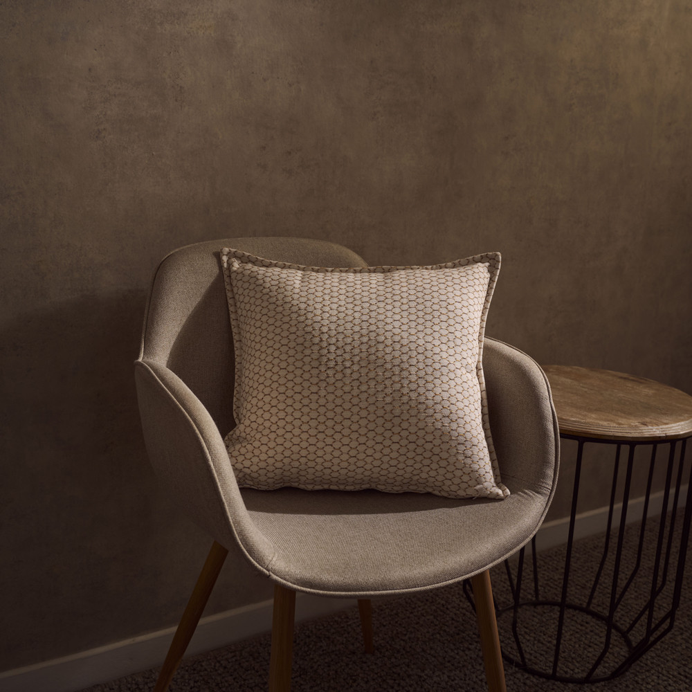 Decorative cushion cover, jacquard fabric with a modern design. Zip fastening. Decorative tab on 3 sides. Warm, soft and durable fabric that provides comfort and personalised style to your room. Can be used as a bed decoration or to add a touch of colour to your sofa. Its colours give you the option of combining it with our collection of bedspreads, sheets and sofa blankets. Made in Spain. The filling is not included.