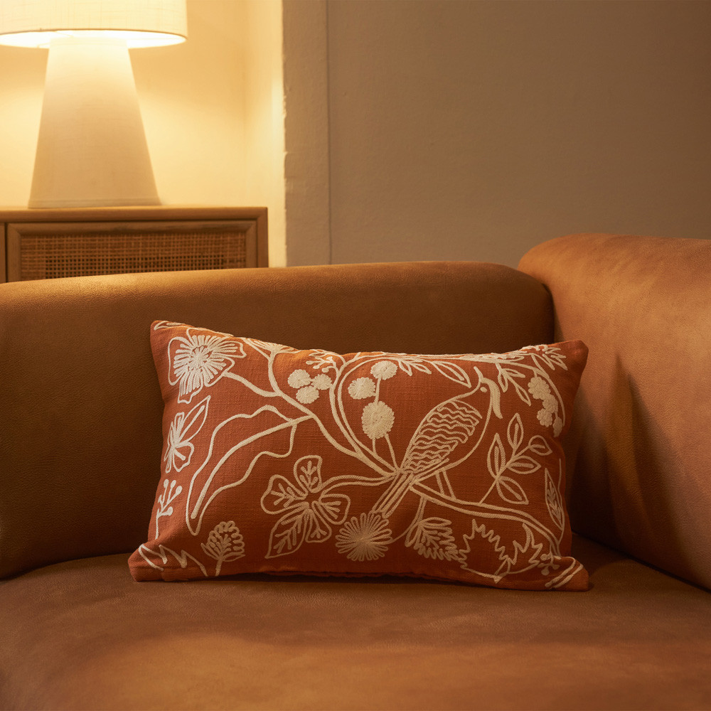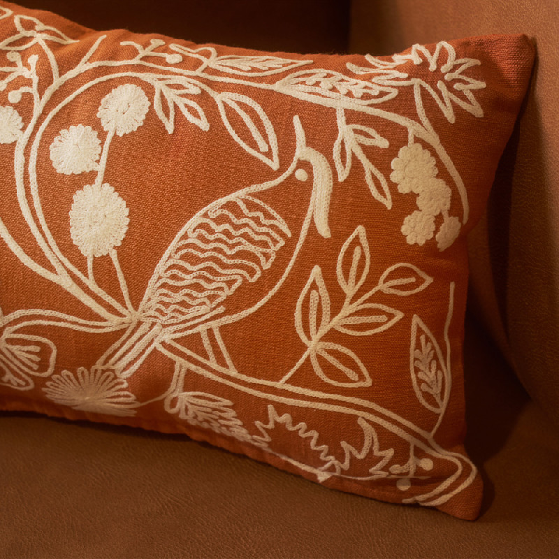 Cushion cover with original embroidered design, creating a beautiful relief of flowers. Zipper closure. Filling not included, to be purchased separately. Combine it with our home collection. Made in India.