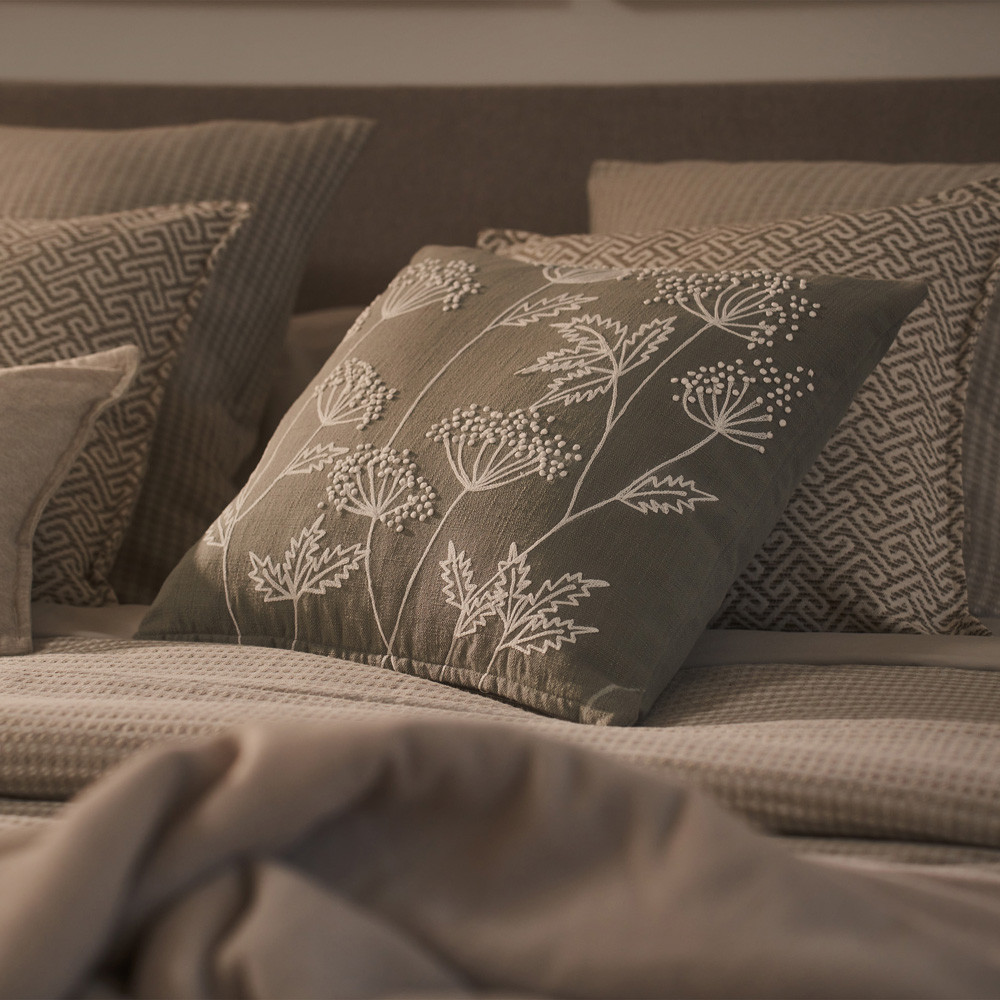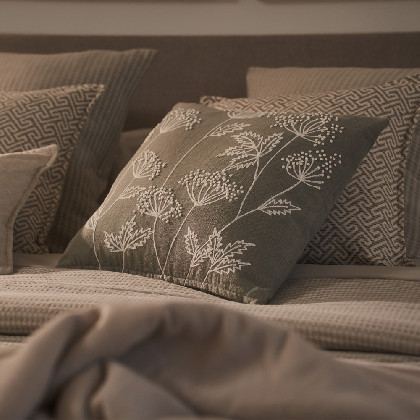 Cushion cover with original embroidered design, creating a beautiful relief of flowers. Zipper closure. Filling not included, to be purchased separately. Combine it with our home collection. Made in India.