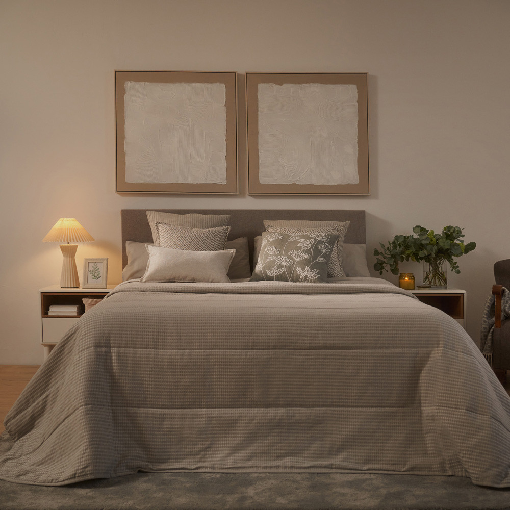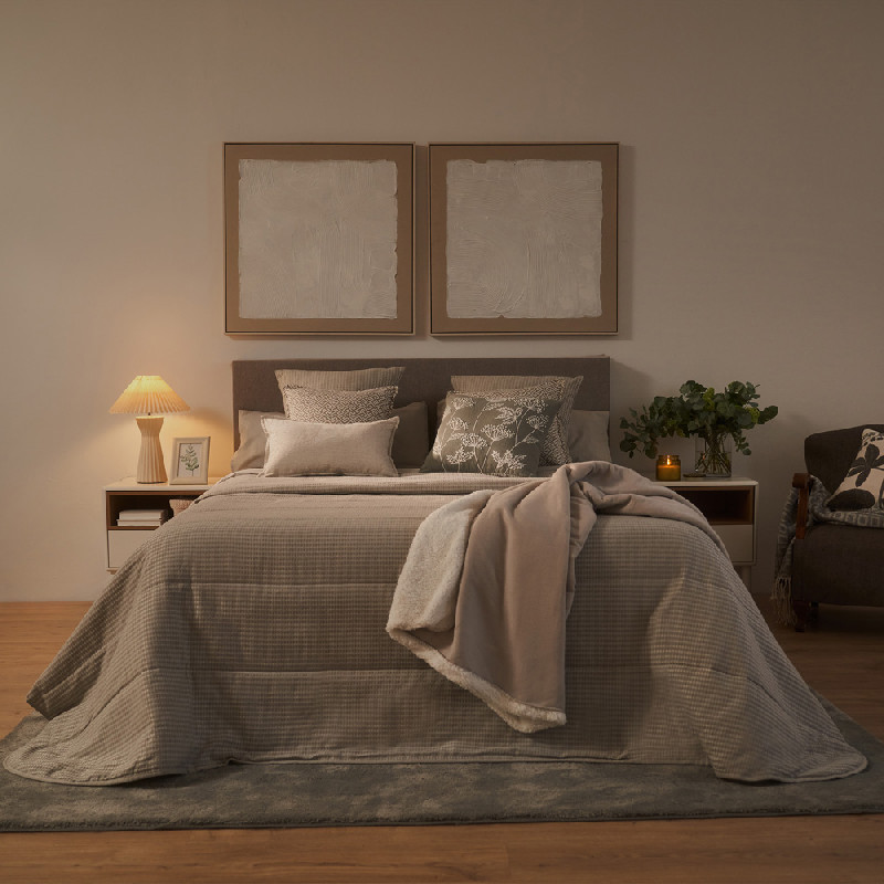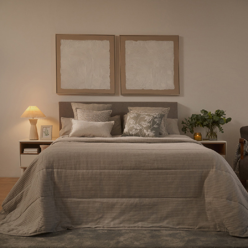 Cotton cushion cover with a unique design. Rustic textured fabric, which adds a warm and cosy touch. Zip fastening. Durable fabric that provides comfort and personalised style to your room. You can use them as decoration on the bed or to give a touch of colour to your sofa. Its colours give you the option to combine it with our collection of bedspreads, sheets and sofa blankets.