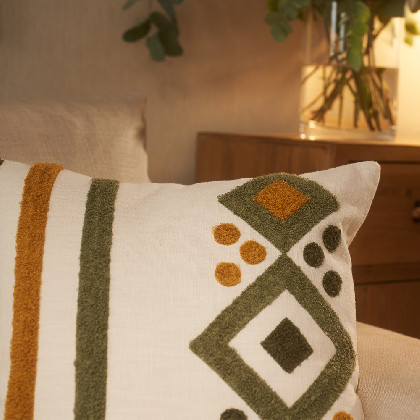 Cotton cushion cover with a unique design. Rustic textured fabric, which adds a warm and cosy touch. Zip fastening. Durable fabric that provides comfort and personalised style to your room. You can use them as decoration on the bed or to give a touch of colour to your sofa. Its colours give you the option to combine it with our collection of bedspreads, sheets and sofa blankets.