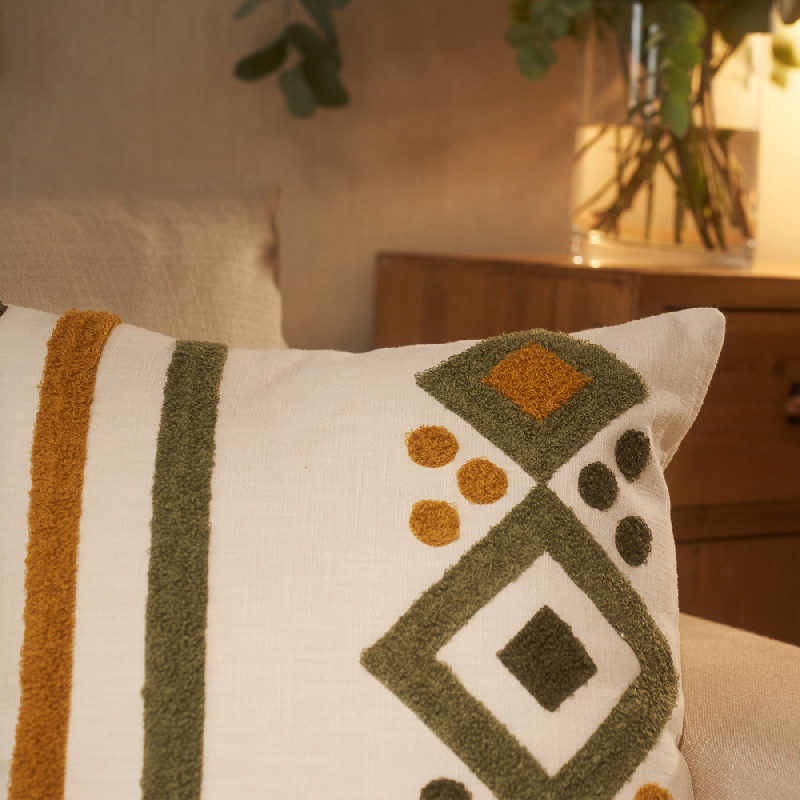 Cushion cover with original embroidered design, creating a beautiful relief of flowers. Zipper closure. Filling not included, to be purchased separately. Combine it with our home collection. Made in India.