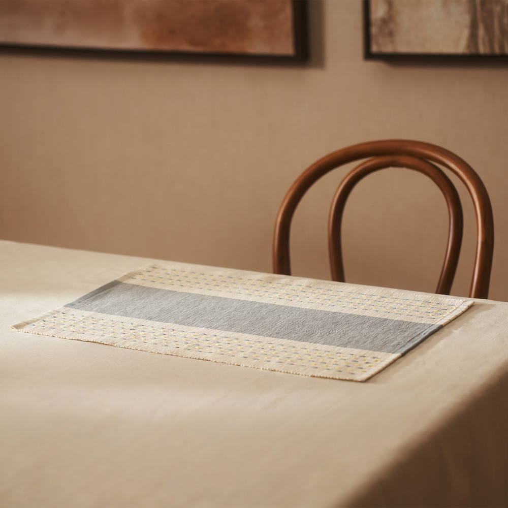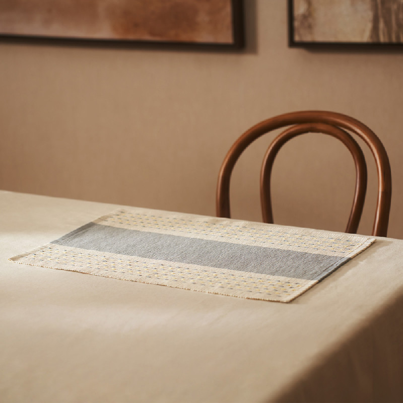 Placemat jacquard reversible with geometric details. 100% cotton. A simple and modern style will have a nice look on the table. Soft and absorbent. Easy to combine with our kitchen linens.