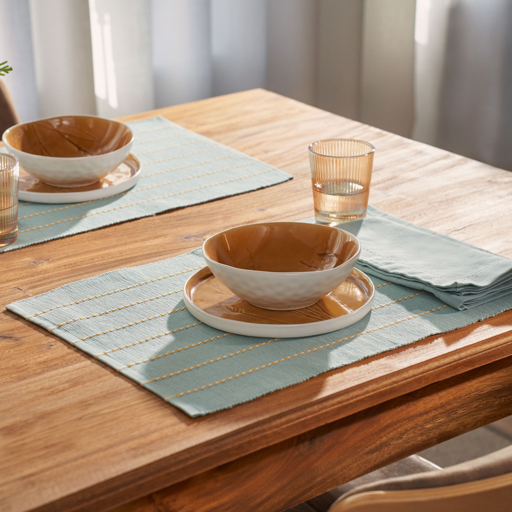 Placemat jacquard reversible with geometric details. 100% cotton. A simple and modern style will have a nice look on the table. Soft and absorbent. Easy to combine with our kitchen linens.