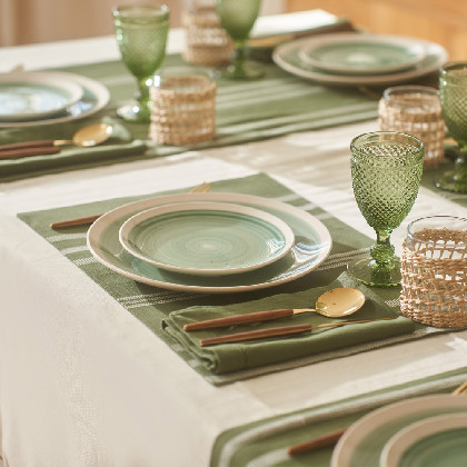 Placemat jacquard reversible with geometric details. 100% cotton. A simple and modern style will have a nice look on the table. Soft and absorbent. Easy to combine with our kitchen linens.