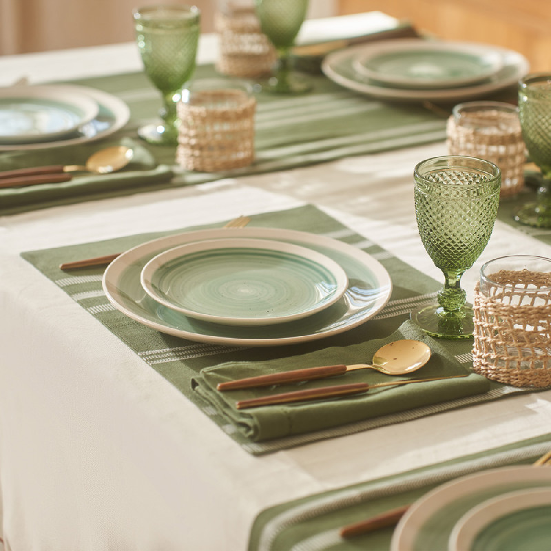 100% cotton stylish and high quality placemat. A simple and modern style will have a nice look on the table. Soft and absorbent. Easy to combine with our kitchen linens. Made in India.