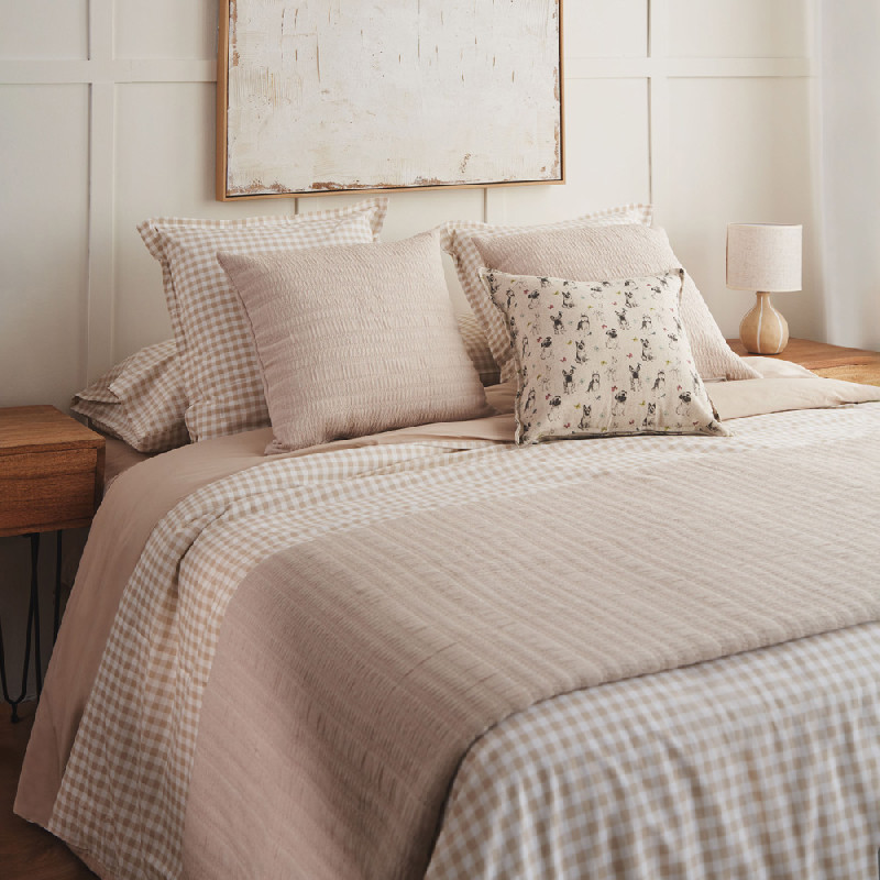 Complete Bed, 3 piece sheet set made from 100% cotton with a thread count of 144. Includes: top sheet, pillowcase and fitted bottom sheet for a maximum mattress height of 31 cm. The cotton fabric is breathable, hypoallergenic and soft to the touch. It provides coolness on summer nights and warmth on cold nights. This product is Oeko-Tex 100 certified, which proves that any harmful substances have been removed during the production process and that it is safe for human health. The modern and cosy fabric prints will give your bedroom a new look. Made in Portugal. The sets include:- for bed 90cm - Single: 1 bottom sheet (160x270cm), 1fitted sheet (90x200cm) , and 1 pillow case (47x110cm).- for bed 105cm - Doble: 1 bottom sheet (190x270cm), 1fitted sheet (105x200cm) , and 1 pillow case (47x120cm).- for bed 135cm - Queen: 1 bottom sheet (210x270cm), 1 fitted sheet (135x200cm) and 2 pillow cases (47x75cm).- for bed 150 / 160 cm - King : 1 bottom sheet (240x270cm), 1 fitted sheet (155x200cm) and 2 pillow cases (47x85cm).- for bed 180cm - Super King: 1 bottom sheet (270x270cm), 1 fitted sheet (180x200cm.) and 2 pillow cases (47x100cm).All fitted sheets ara suitable for mattresses up to 31cm deep.This sheet set has a length of 270cm, this is designed so that the excess fabric can be tucked under the mattress to ensure a better grip of the duvet filling and prevent it from moving.