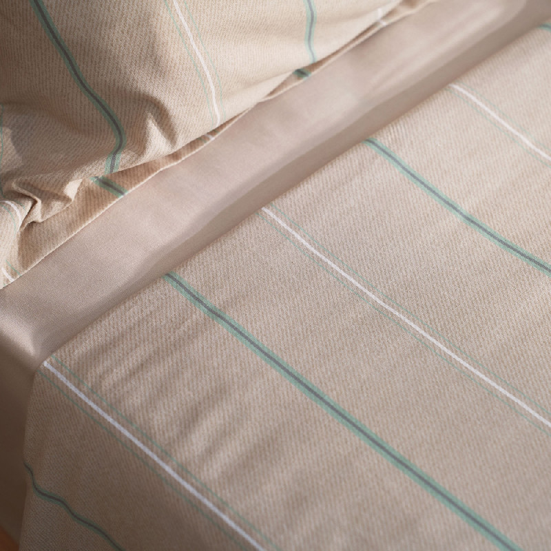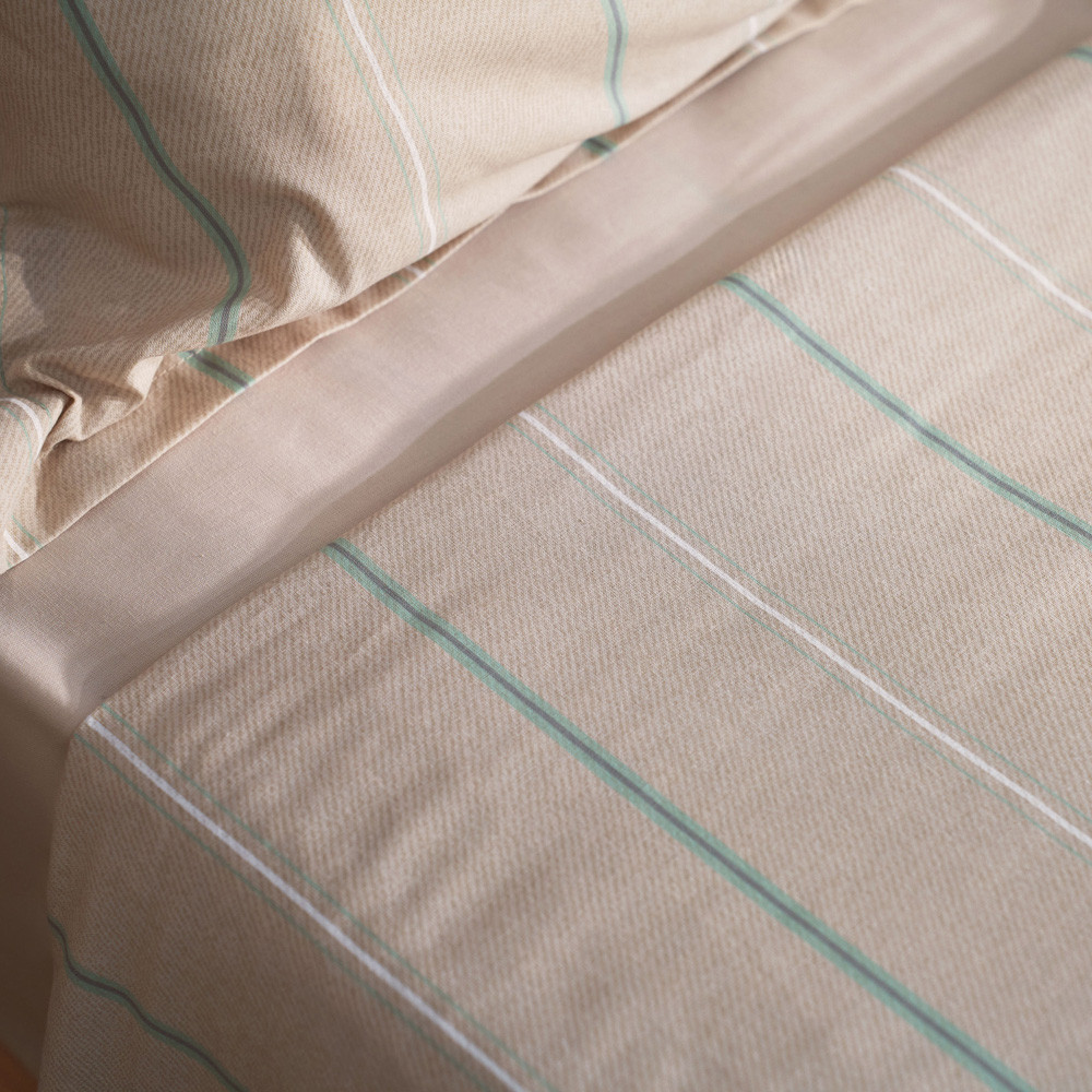 Complete Bed, 3 piece sheet set made from 100% cotton with a thread count of 144. Includes: top sheet, pillowcase and fitted bottom sheet for a maximum mattress height of 31 cm. The cotton fabric is breathable, hypoallergenic and soft to the touch. It provides coolness on summer nights and warmth on cold nights. This product is Oeko-Tex 100 certified, which proves that any harmful substances have been removed during the production process and that it is safe for human health. The modern and cosy fabric prints will give your bedroom a new look. Made in Portugal.