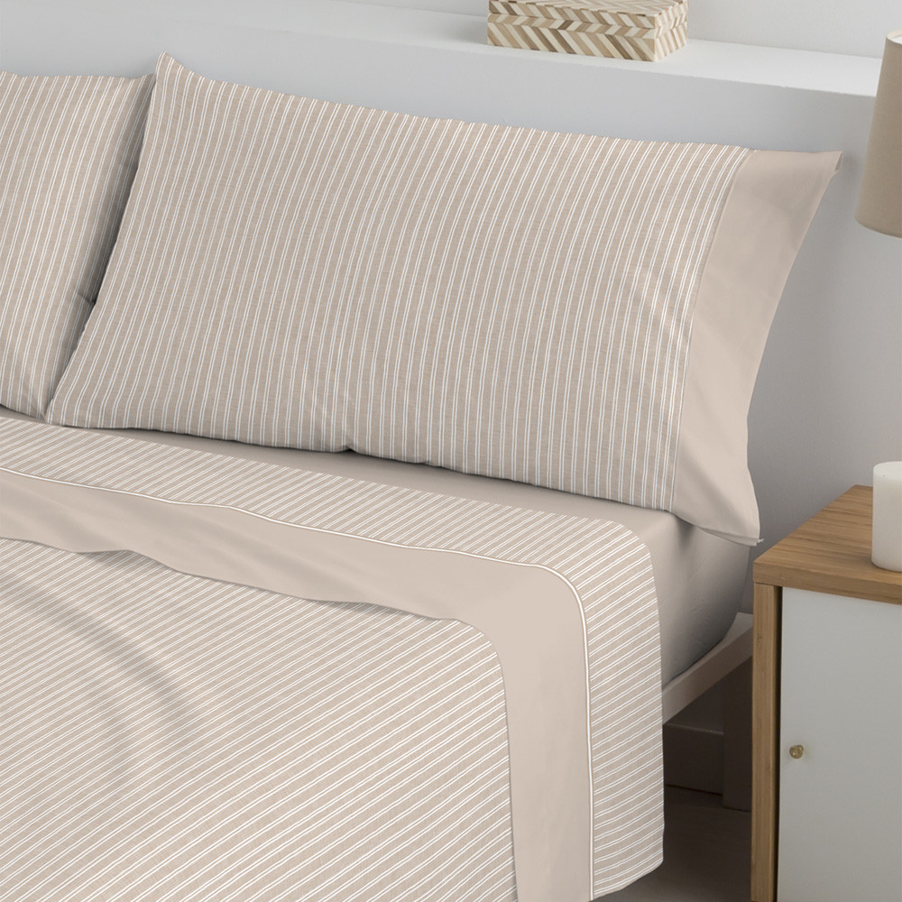 Complete Flannel Bed, 3 pieces: top and bottom sheet and pillow cases with 90% cotton - 10% polyester. Sets for mattresses 135 and 150cm include 2 pillow cases. All fitted sheets ara suitable for mattresses up to 28cm deep. Flannel is a very soft and pleasant to touch fabric. Get your bed ready for the colder months. These warm and cozy flannel sheets provide chick style and lasting comfort to your bedroom. Made in Spain.