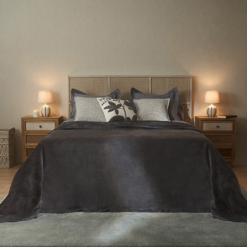 A warm cotton blanket that will create a new harmony in your home. Fabric: 60% cotton and 40% acrylic. Density: 500gsm. Made in Portugal. Finished with elegant piping. Soft and pleasant to the touch, ideal for use as a blanket or decorative throw on the sofa... Combine it with our collections.