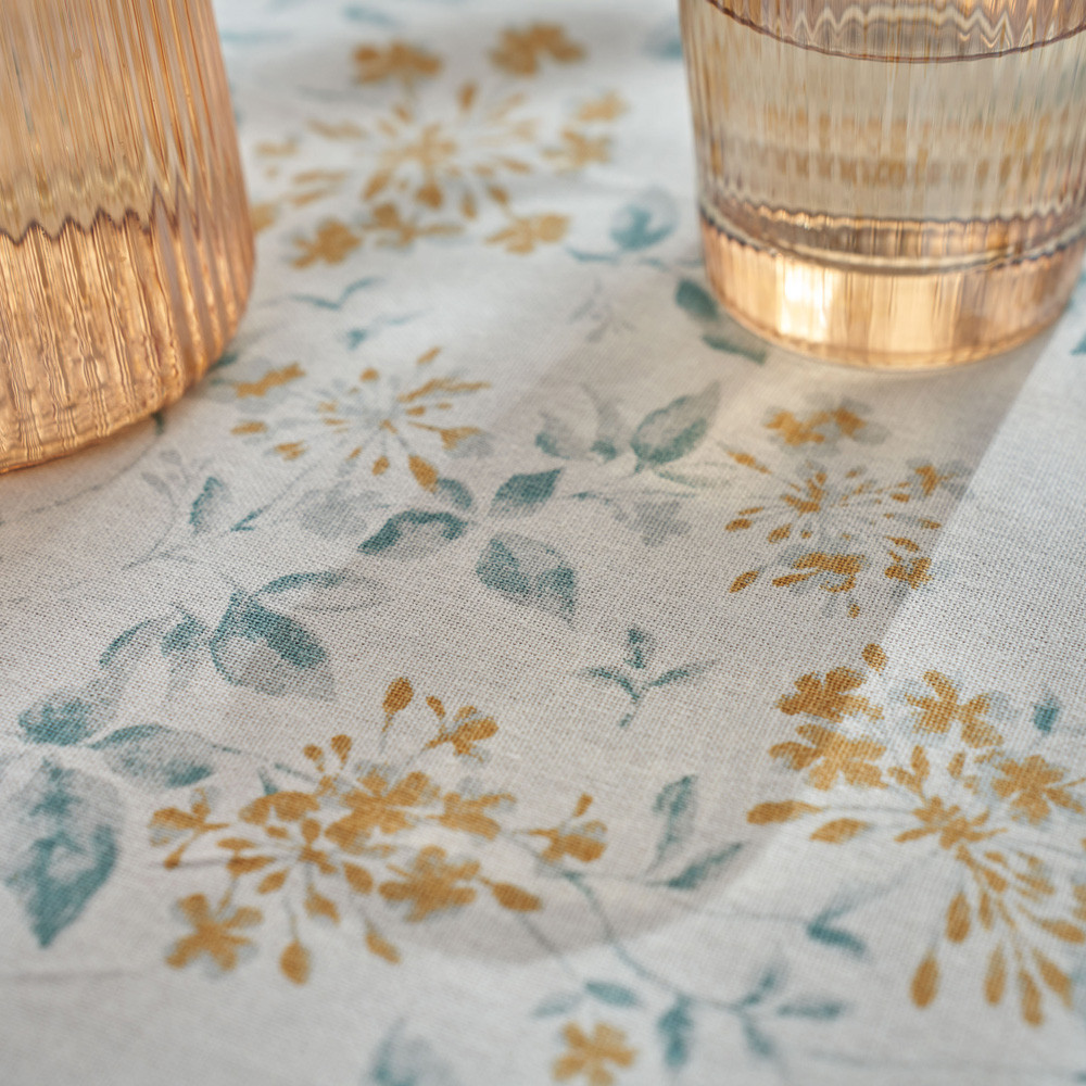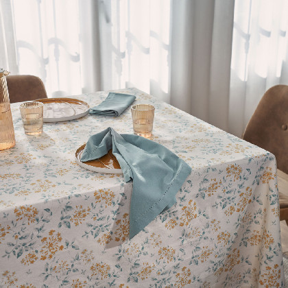 Elegant cotton and polyester blend tablecloth with a jacquard design and English hem. A perfect finish, ideal for dressing your table with style on special occasions. Add a personal touch by combining it with matching napkins. Made in Portugal.