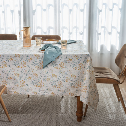 Tablecloth solid Aqua colour, yarn dyed 100% cotton with hemstitching. Durable and easy ironing washing. Use it as a beautiful accent to a dinner party with friends and family. Combine it with our table linen complements: napkins, runners, place mats.