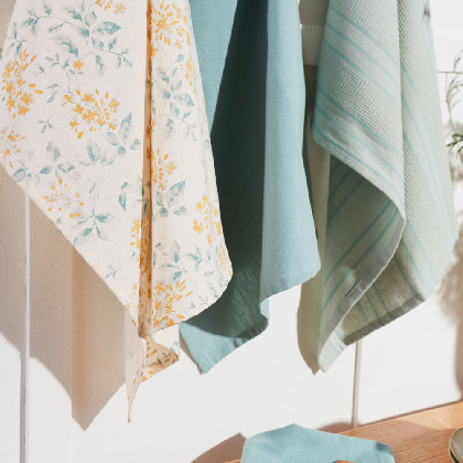 Elegant tea towel with a natural finish, made with 100% cotton jacquard fabric and 250gsm density. With feature clip to hang. High absorbency and a light weight. Very soft and absorbent, ideal for drying glasses and dishes, or cleaning surfaces. Care advises: maximum washing temperature 60°C. Not to use fabric softeners, dry on air or short circle tumble dry. A perfect gift for any occasion, useful and beautiful. Combine it with our collections of kitchen.