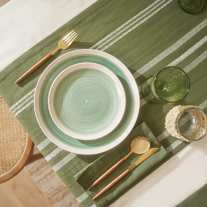 Set of 2 napkins in plain colour, made of 100% cotton dyed yarn. Easy to wash and iron. Their simple and modern style will have a nice effect on the table. Soft and absorbent. Combine with the matching tablecloths and table accessories. Made in India.