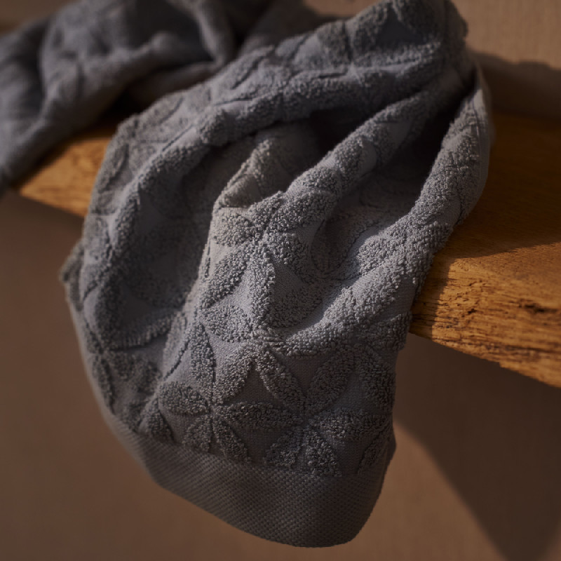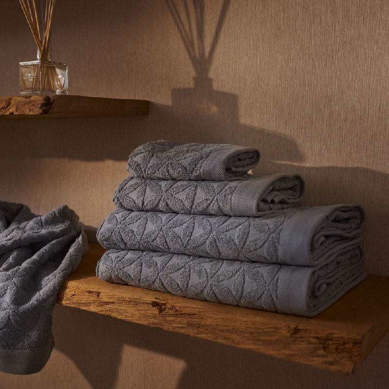 American terry towels set 4 pieces made of 100% carded cotton, with double end, which gives it more resistance and fluffiness. This set includes: 2x hand towel (50x100cm), 2 x bath towel (70x140cm) in same colour. Beautiful fantasy jacquard design. Density of 500gsm. Reactive dyed, which guarantees the fastness of dark colours. Thick, fluffy and highly absorbent. This product is Oeko-Tex 100 certified, proving that any harmful substances have been eliminated in the production process, it's safe for human health. The best option for the gift and perfect colours combination in your bathroom. Combine with plain coloured towels.