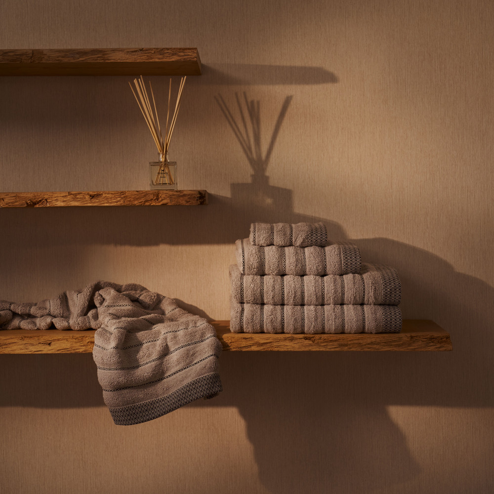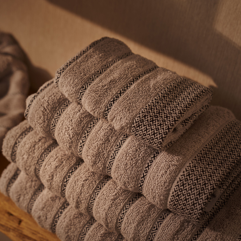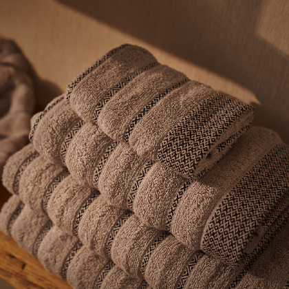 American terry towels set 4 pieces made of 100% carded cotton, with double end, which gives it more resistance and fluffiness. This set includes: 2x hand towel (50x100cm), 2 x bath towel (70x140cm) in same colour. Beautiful fantasy jacquard design. Density of 500gsm. Reactive dyed, which guarantees the fastness of dark colours. Thick, fluffy and highly absorbent. This product is Oeko-Tex 100 certified, proving that any harmful substances have been eliminated in the production process, it's safe for human health. The best option for the gift and perfect colours combination in your bathroom. Combine with plain coloured towels.