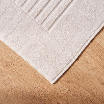 Alfombra de baño de rizo de algodón cardado de 900gsm. Gran suavidad y capacidad de absorción. Este producto tiene el certificado Oeko-Tex 100, que demuestra que se ha eliminado cualquier sustancia nociva en el proceso de producción, es seguro para la salud humana. Fabricado en Turquía.