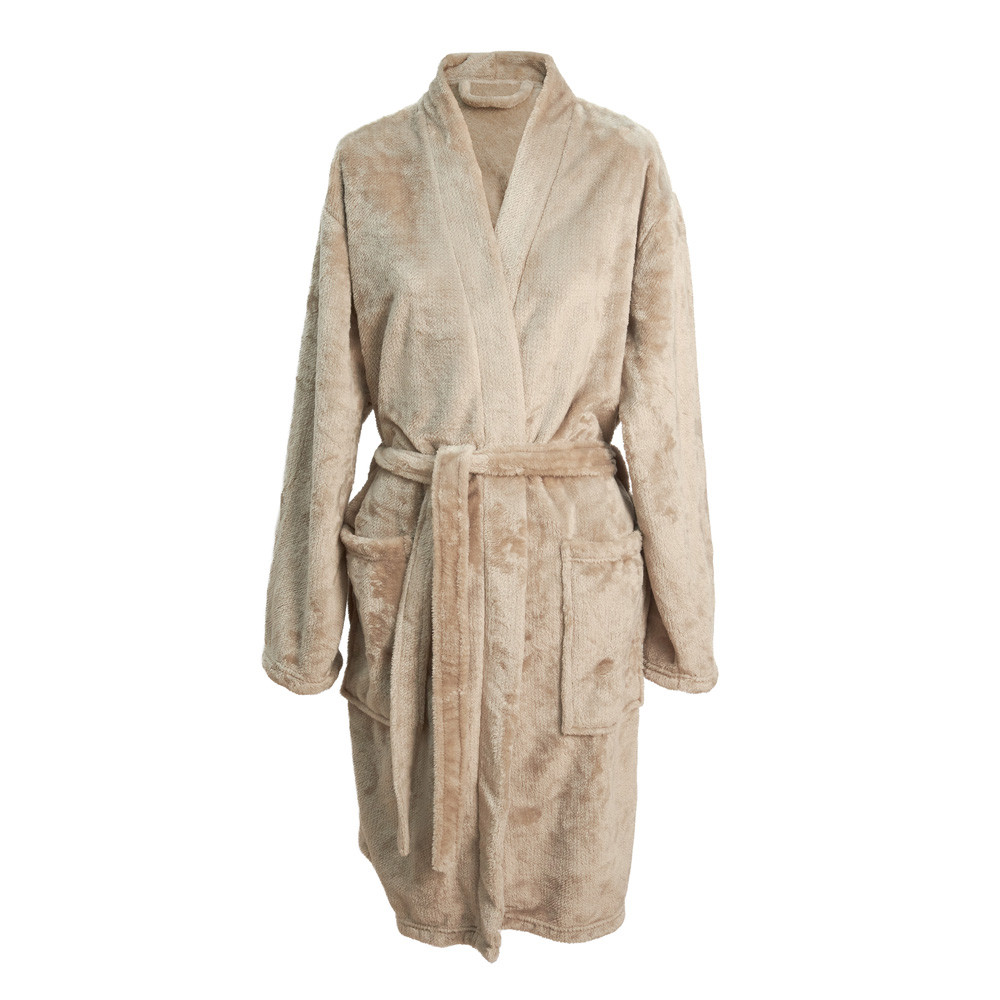 Bata unisex de microfibra, 100% poliéster con tacto suave aterciopelado, proporciona calidez en épocas de frío. Cómoda bata de amplios bolsillos y cinturón..
