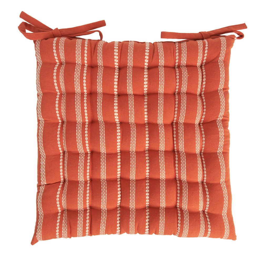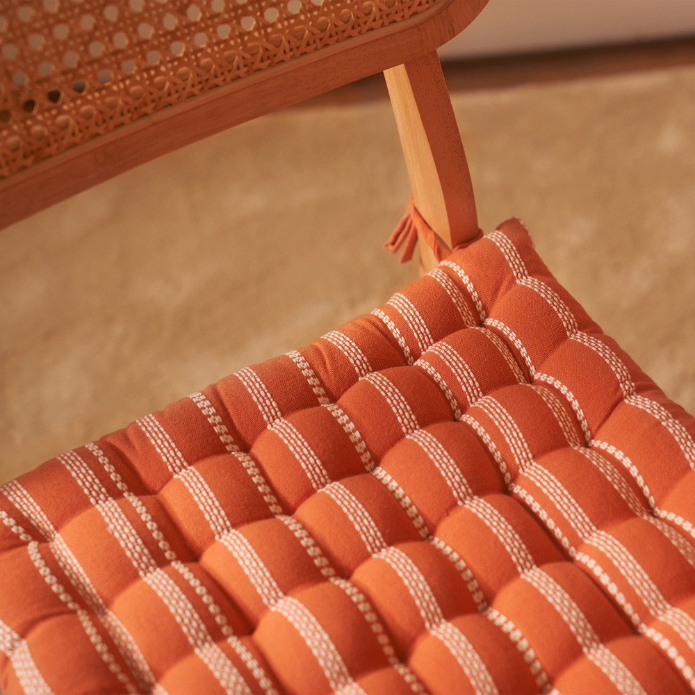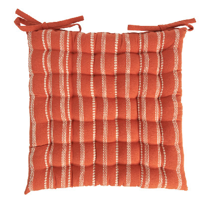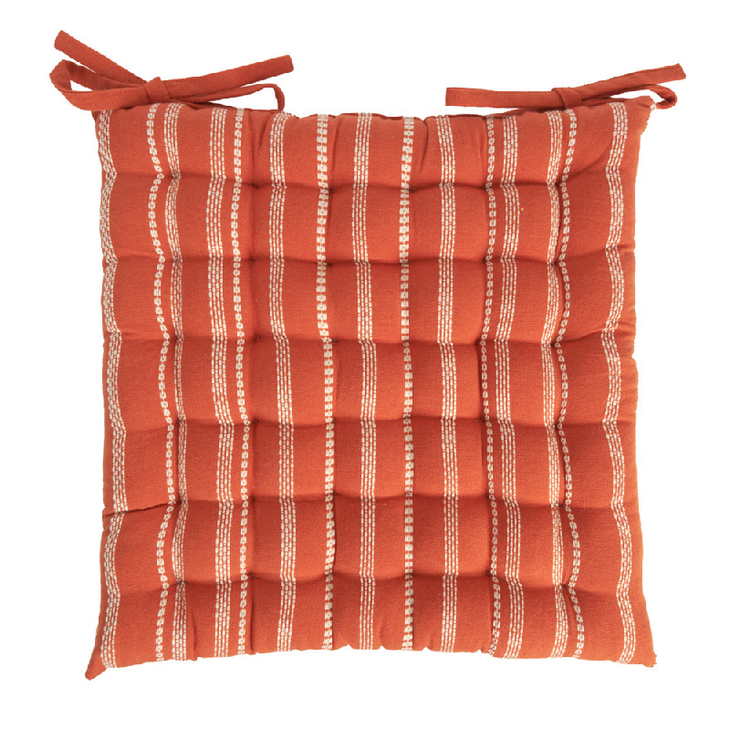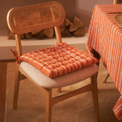 Cojín de silla para proteger y decorar tus sillas. Relleno acolchado mezcla de algodón, con cintas para fijar y adaptar a tu silla. Se recomienda no lavar en lavadora, lavar a mano y secar en horizontal para evitar que el relleno se deforme. Combínalos con nuestras mantelerías y colecciones de cocina.