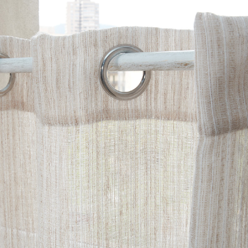 Cortina confeccionada de alta calidad, tejido de mezcla de poliéster y lino. Gracias a los 8 ojales de la parte superior, podrás colgar las cortinas a la barra de una manera sencilla y rápida. Fabricado en España. Decorar tu casa nunca había sido tan sencillo, barato y práctico. No incluye barra. ¿El tamaño o tejido de las cortinas no se ajusta a lo que estás buscando ? Pregúntanos por nuestro departamento de confección a medida. Disponemos de una gran variedad de estilos, diseños, colores y mecanismos para adaptarse a cualquier decoración.