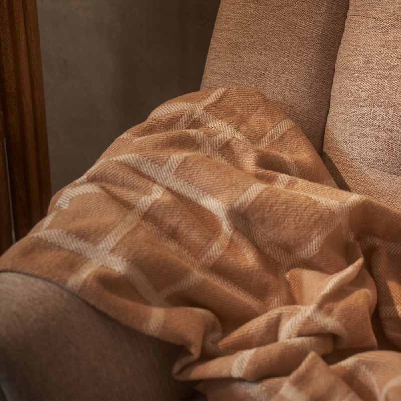 Plaid de gran calidez que creará una nueva harmonía en tu hogar. Tejido 80% lana - 20% acrílico. Densidad del tejido: 380gsm. Acabados en flecos. Hecho en España. Este modelo es reversible, con lo que puedes usarlo por las dos caras. De tacto suave y agradable que puedes usar tanto cómo manta, plaid decorativo... Combínalo con nuestras colecciones.
