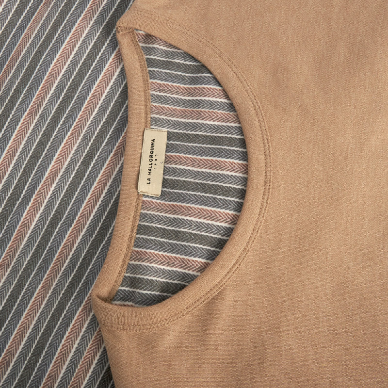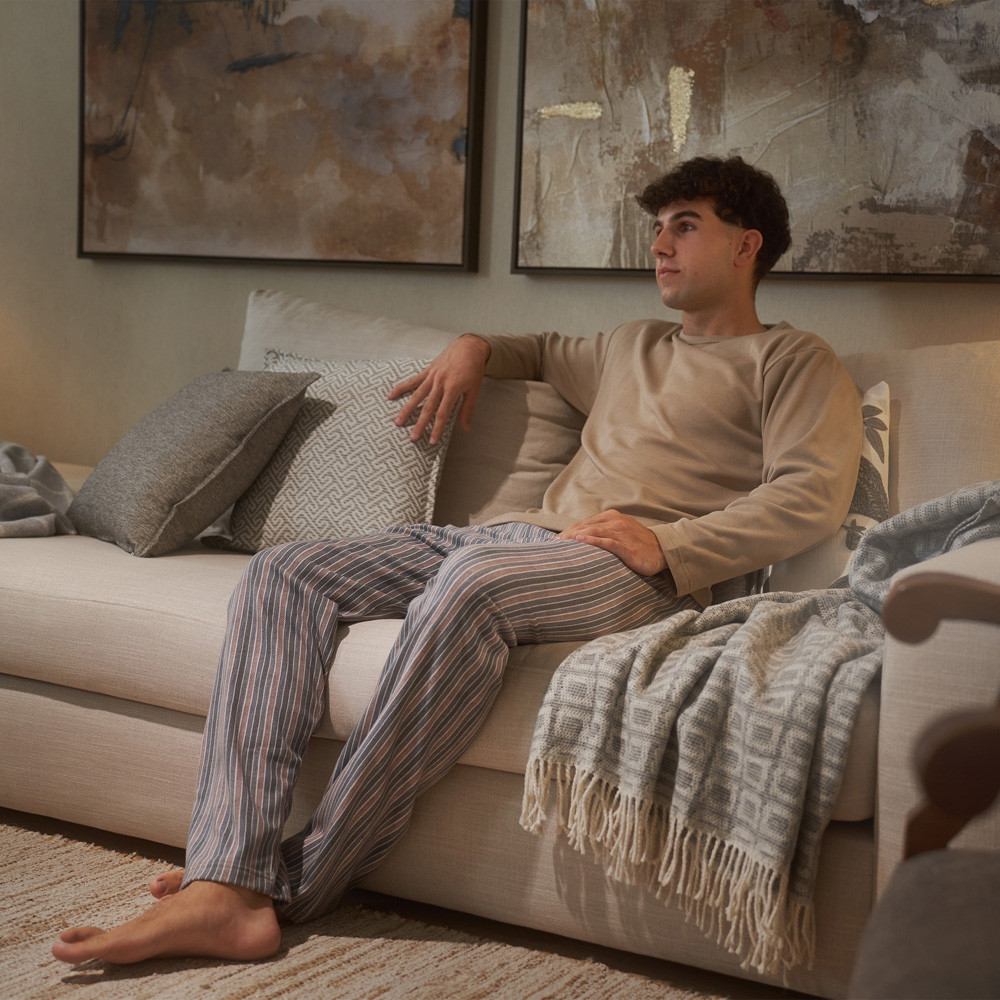Pijama con camiseta de manga larga y pantalón largo, con detalle estampado y colores modernos, lo hacen una prenda única. Tejido perchado que proporciona un tacto aterciopelado, esponjoso y muy suave. Máximo confort y calidez. Fabricado en mezcla de algodón y poliéster, el mejor tejido para descansar y preservar los colores por más tiempo. Fabricado en Portugal.