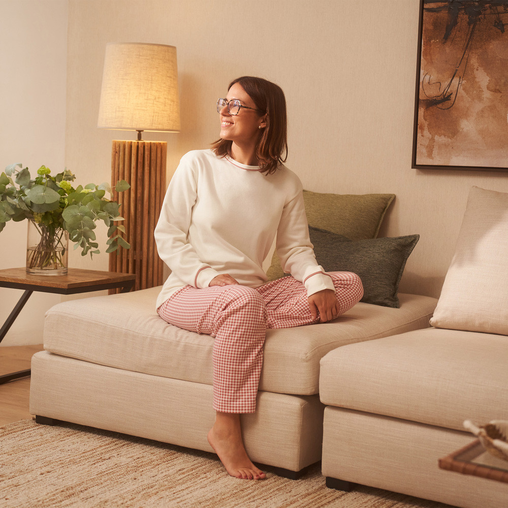 Pijama con camiseta de manga larga y pantalón largo, con detalle estampado y colores modernos, lo hacen una prenda única. Tejido perchado que proporciona un tacto aterciopelado, esponjoso y muy suave. Máximo confort y calidez. Fabricado en mezcla de algodón y poliéster, el mejor tejido para descansar y preservar los colores por más tiempo. Fabricado en Portugal.