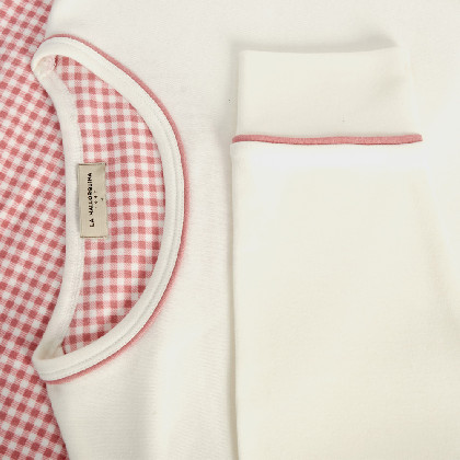 Pijama de dos piezas, camiseta de manga corta y pantalon largo. Tejido 100% algodón. Cuello redondo con abertura de botones. Pantalón con cintura elástica y bolsillos. Con un diseño moderno y juvenil. El algodón es una fibra natural hipoalergénica y transpirable que tiene un tacto suave. Ideal para dormir o estar por casa en días de calor. Fabricado en Portugal.