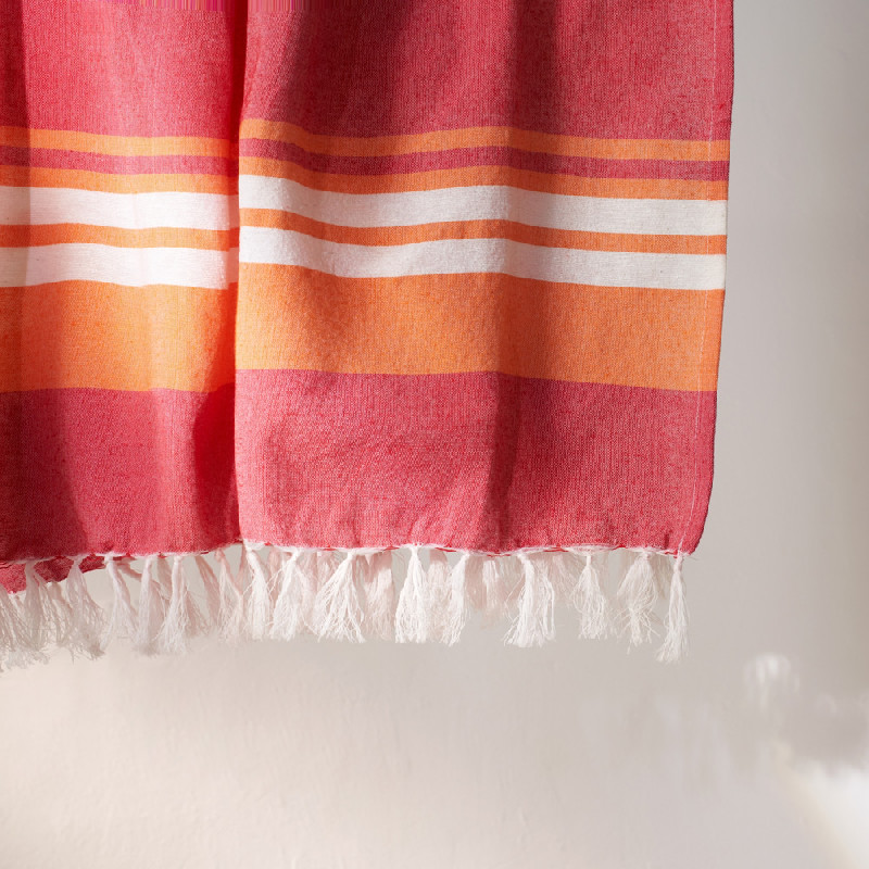 Una toalla de playa Fouta, 100% algodón, una cara de rizo para asegurar una excelente capacidad de absorción y máxima suavidad. Es muy ligera y práctica, ocupa poco lugar por sus medidas, se seca rápidamente. Fabricado en Turquía.